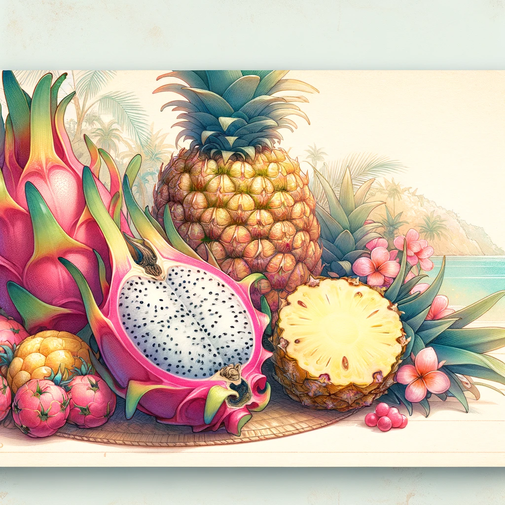 ドラゴンフルーツの鮮やかな赤い果肉には、美容と健康を支える豊富な栄養素が詰まっています。そして、パイナップルの甘酸っぱい果汁には、私たちの体を内側から健やかに保つ秘密の成分が含まれているのです。