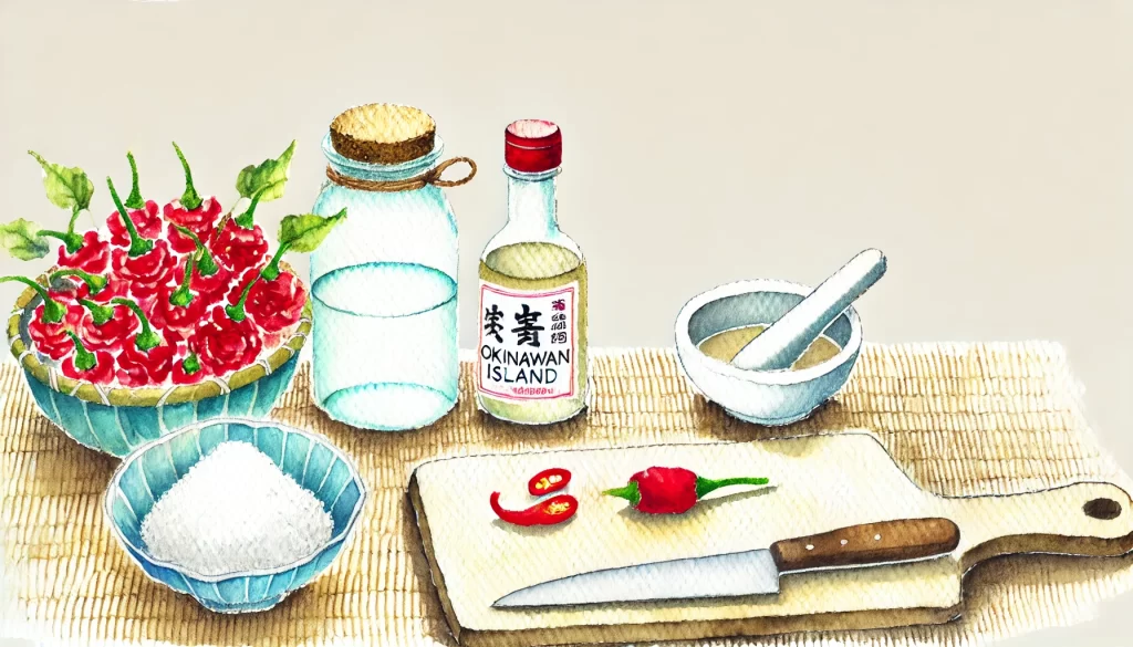- 島とうがらしを泡盛に漬け込んで作る万能調味料