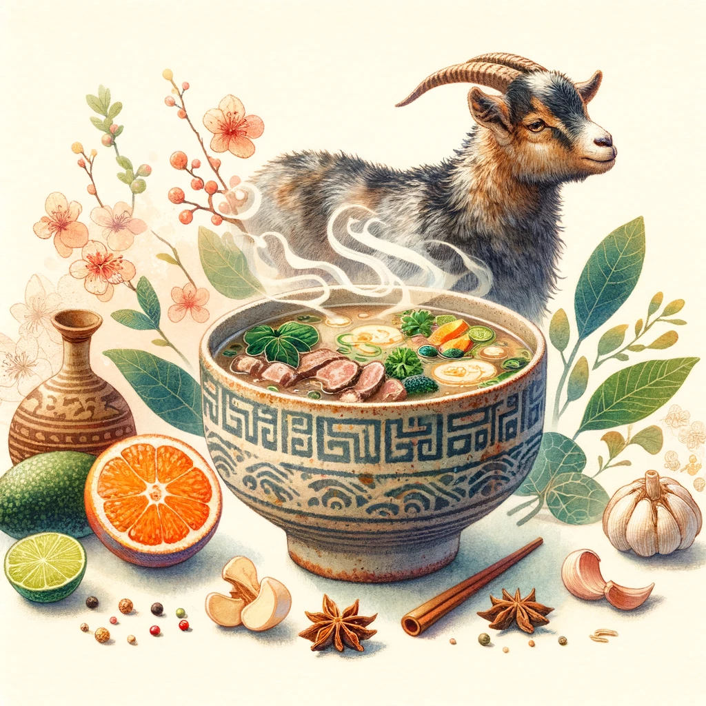 Goat soup offers a good balance of protein, fat, and carbohydrates, and is rich in vitamins and minerals from vegetables and spices. Given that goat meat is low in calories, it is also suitable for those on a diet.