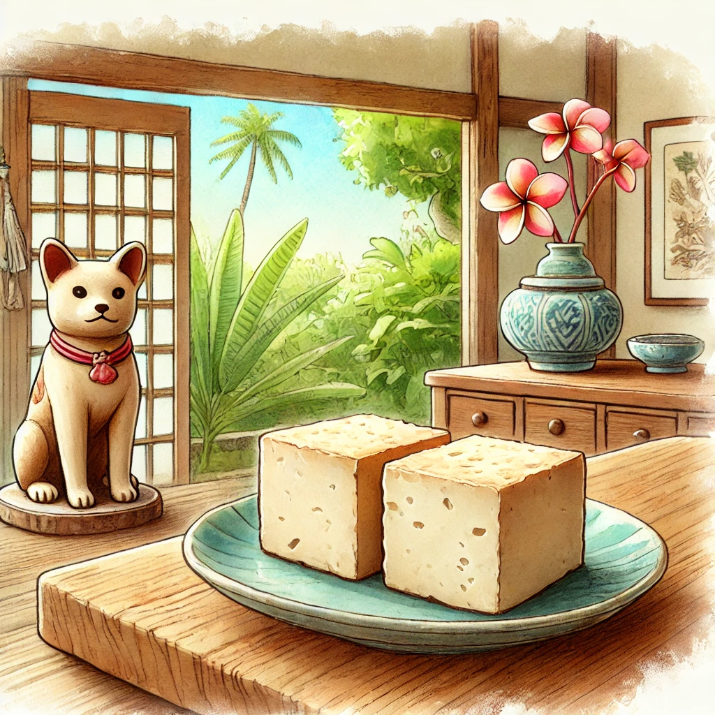 Hello! Have you ever heard of “Shima Tofu,” an essential part of Okinawan cuisine? Shima Tofu is a traditional ingredient nurtured by Okinawa’s sun and earth, renowned for its unique chewy texture and rich soybean flavor.
