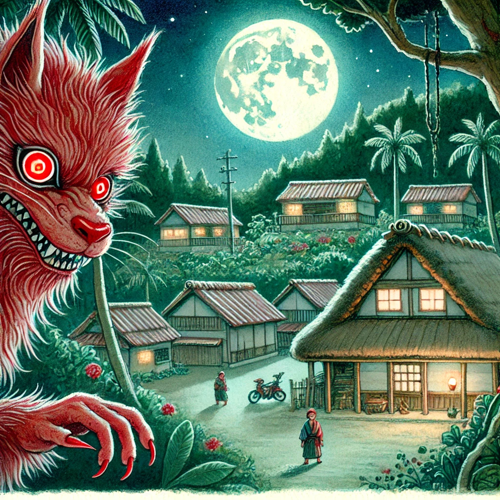 Okinawa has long been home to mysterious and captivating legends. Among these, the legend of the “Akamata” stands out as particularly famous. Akamata is a supernatural being said to drink human blood and appears as a red-furred dog or cat, and sometimes even in human form. The Akamata, which is believed to emerge at night and attack people, has a deep-rooted presence in the minds of the people of Okinawa.