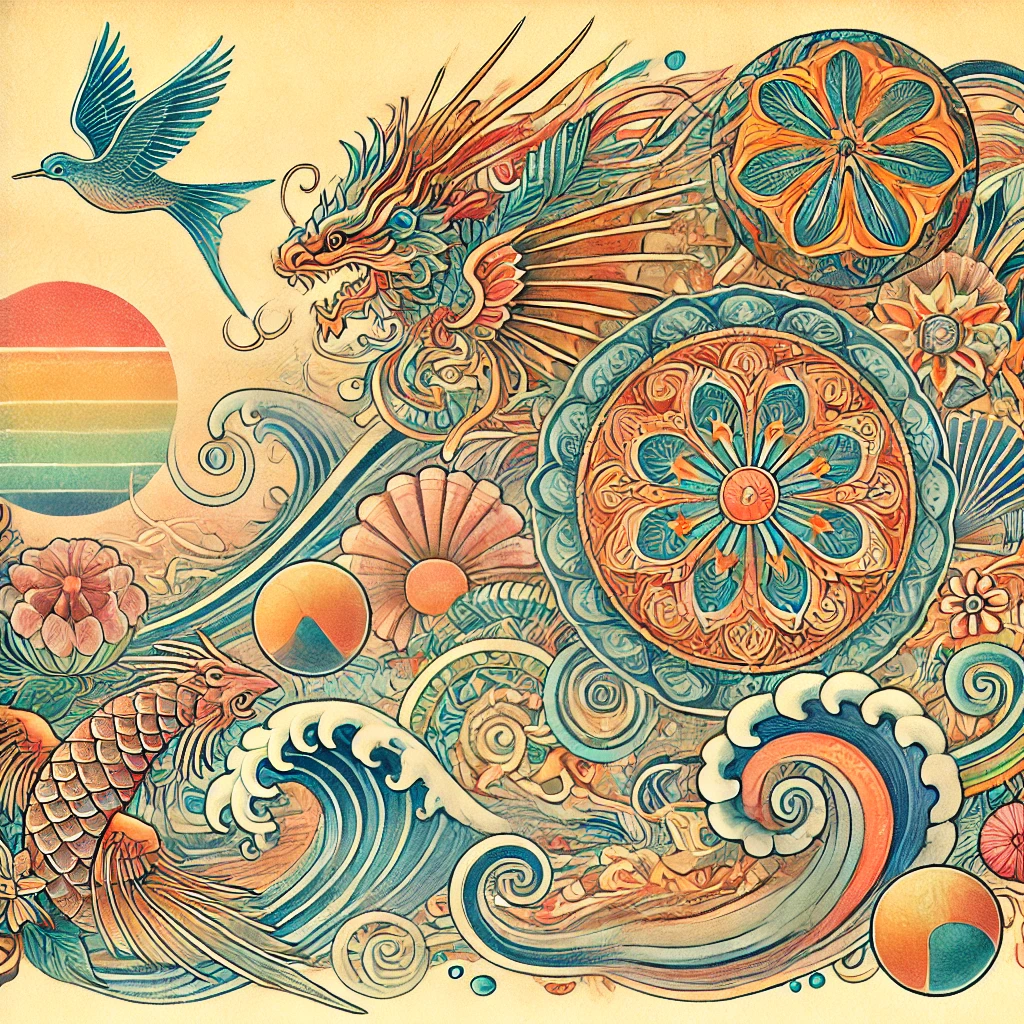 Okinawans have long revered nature as sacred, believing that gods inhabit mountains, seas, forests, and rivers, appreciating nature’s blessings and cherishing a way of life in harmony with it. This nature worship ideology is vividly reflected in Bingata. Many Bingata patterns depict waves, shells, and flowers, not just expressing nature’s beauty but embodying Okinawans’ spirituality of living in harmony with nature. For example, wave patterns symbolize gratitude for the sea’s bounty and the willingness to embrace nature’s power. Shell patterns represent reverence for the natural forces that create marine abundance. Bingata portrays a world where nature and humans coexist harmoniously, embodying Okinawan views on nature.