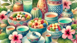 琉球料理の美しい盛り付けの秘密を解説。伝統的な「チンプーグ」の精神から現代的なアレンジまで、家庭で実践できるテクニックを紹介。沖縄の文化と歴史を味わう、魅惑の食卓へようこそ。